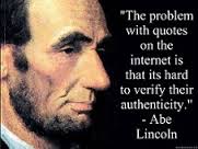 … In trying to track down the source of this quotation, I discovered that research librarians at Monticello have compiled an impressive collection of spurious Jefferson quotations. Mount Vernon’s website has a similar resource for spurious Washington quotations, as does Winston Churchill’s fan website. Abraham Lincoln may be the biggest victim of false quotations; in fact both Ronald Reagan and Barack Obama have quoted the same pseudo-Lincoln passage in presidential speeches. It must have been exasperation over all these fabrications that led Abe to utter his well-known warning, “The problem with quotes on the Internet is that it is hard to verify their authenticity.” It’s not hard to see the irony in the internet’s dual role in such stories of false attribution. As “Abe” so wisely warns in that brilliant meme, the web makes it dismayingly easy for false quotations, like false information in general, to spread exponentially. But the web, used carefully, is also a rich mine of true information that can help us to unmask falsehoods. Didn’t I just admit to using it to ferret out the truth about that baffling bumper sticker? [Read more]