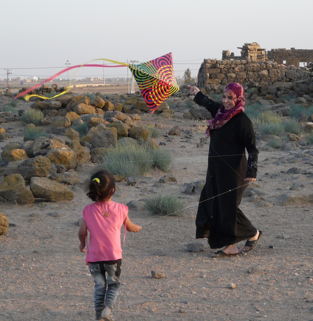 Enjoyment. The end of the story is joy and enjoyment, here ‘lived’ by Fatima Hazza’s and daughter Ayya’s kiting in the ruins on a breezy day ‘once upon a time’ not long ago.