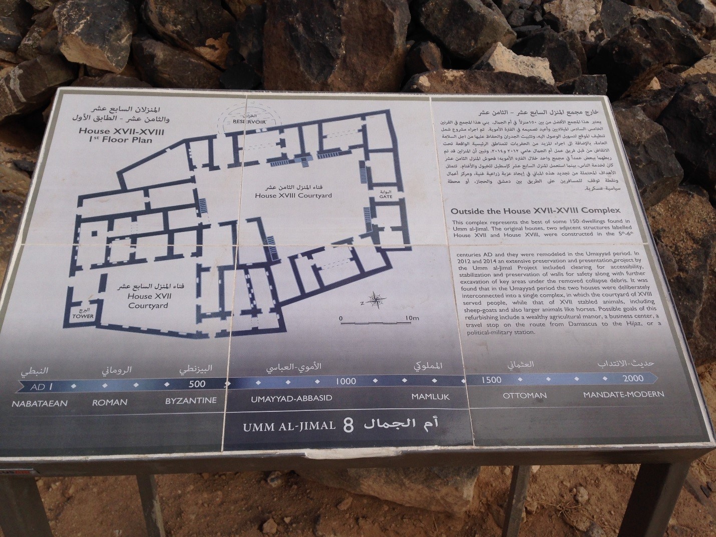 Presentation. House XVII-XVIII, originally two Byzantine houses, were merged into a larger single-purpose Umayyad complex, whose presentation included the placement of six interpretive signs (designed by Open Hand Studios), part of a site-wide interpretive trail being completed in 2015-6.