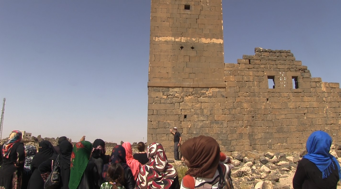 Archaeology training. Also in the fall 2014 Bert de Vries taught the women Archaeology, including the stratigraphy of Jordan, and the archaeology of Umm el-Jimal, Jerash and Amman. Here he explains the inscriptions on the UJ Barracks Tower.